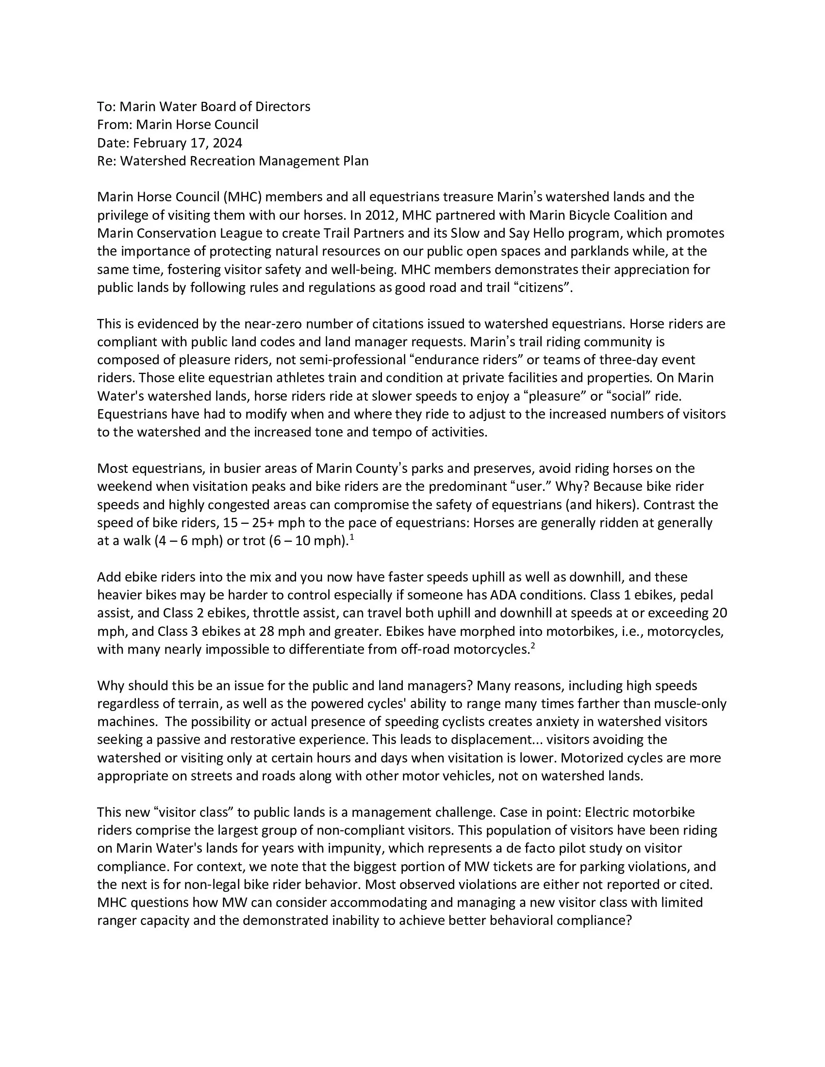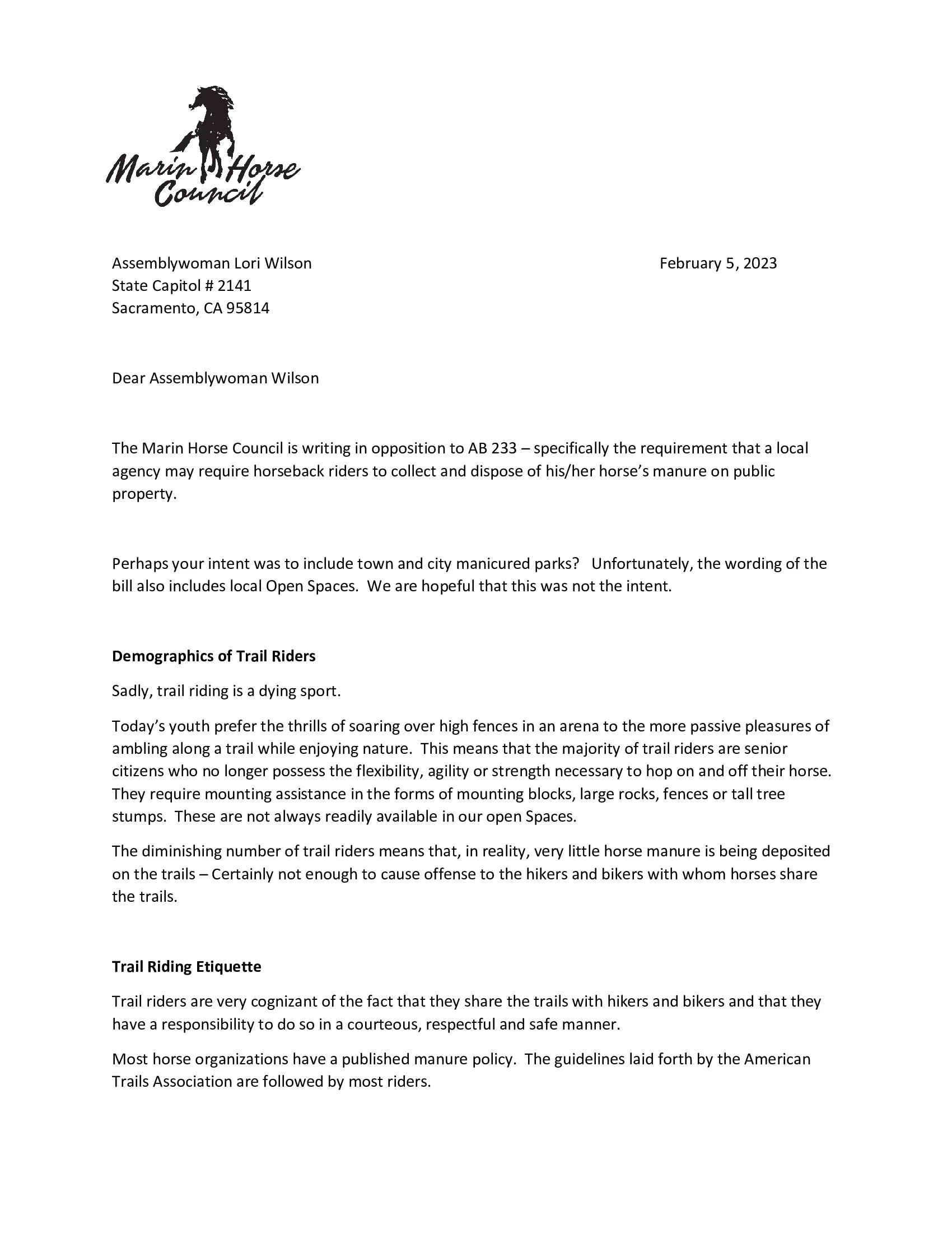 The Marin Horse Council stays involved to be sure the equestrian community is represented. Upcoming!